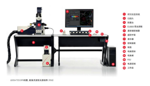 激光扫描共聚焦显微镜是采用激光作为光源,在传统光学显微镜基础上采用共轭聚焦原理和装置,并利用计算机对所观察的对象进行数字图像处理的一套观察、分析和输出系统。主要系统包括激光光源、自动显微镜、扫描模块(包括共聚焦光路通道和针孔、扫描镜、检测器)、数字信号处理器、计算机以及图像输出设备(显示器、彩色打印机)等。通过激光扫描共聚焦显微镜,可以对观察样品进行断层扫描和成像。因此,可以无损伤的观察和分析细胞的三维空间结构。同时,通过激光扫描共聚焦显微镜也是活细胞的动态观察、多重免疫荧光标记和离子荧光标记观察的有力工具。