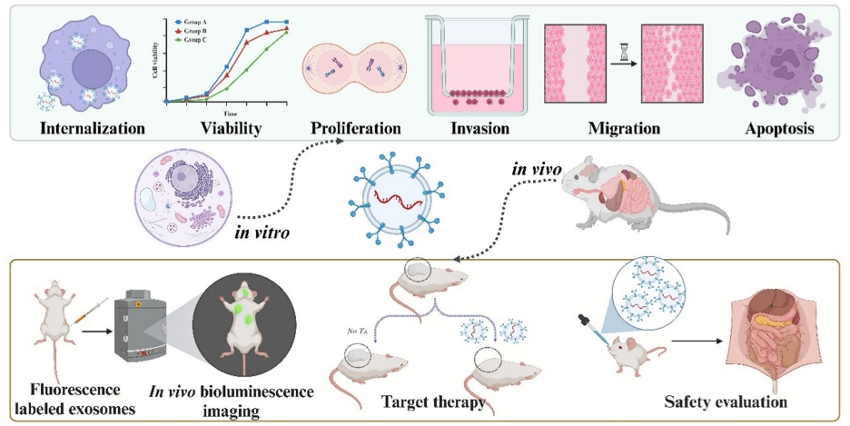 外泌体具有低免疫源性、高穿透性和丰富的分子携带能力,在疾病治疗领域具有极佳潜力。在将外泌体正式用于人体临床试验之前,需要对外泌体的细胞摄取效率、细胞靶向性验证、药物释放效率、药物稳定性、药物递送效率和治疗效果等进行多项评价,包括动物体内和细胞功能评价。